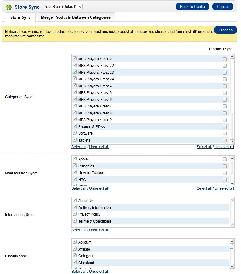 Select product, categories, manufacturers, infomations and even layouts to appear in each stores easily.