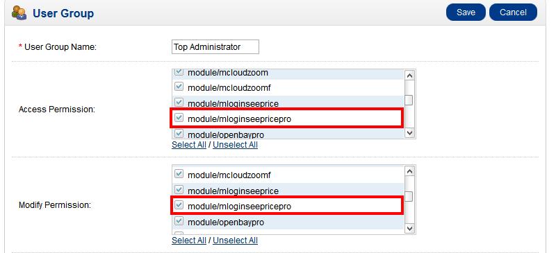 Login to your Opencart admin and go to System ➔ Users ➔ User Group.