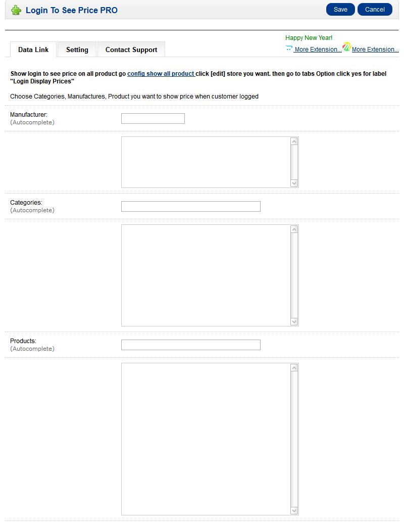 Add products, categories or manufacturers to exclude if you do not want to hide the price.