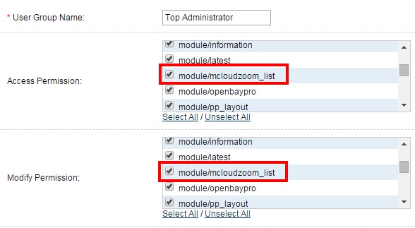 Login to your Opencart admin and go to System ➔ Users ➔ User Group.