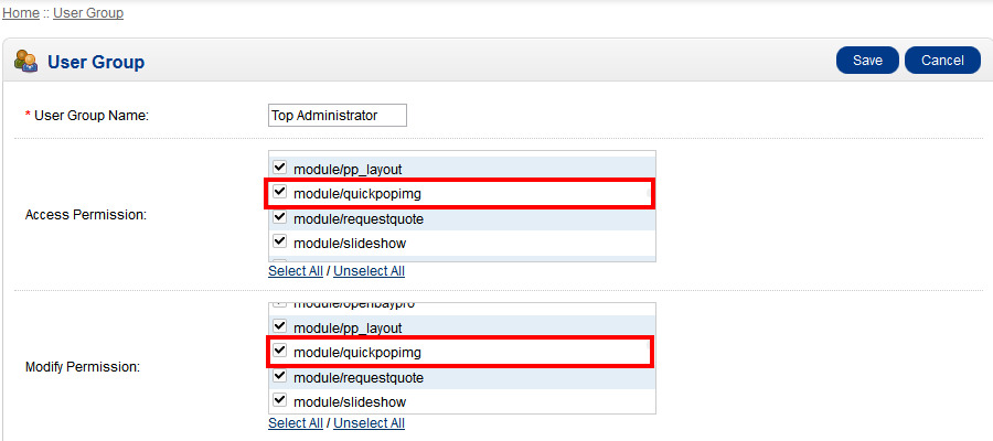 Login to your Opencart admin and go to System ➔ Users ➔ User Group.