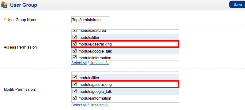 Login to your Opencart admin and go to System ➔ Users ➔ User Group.