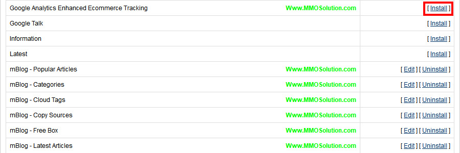 Go to Extensions ➔ Modules ➔ Click install Google Analytics Enhanced eCommerce Tracking as image 3.