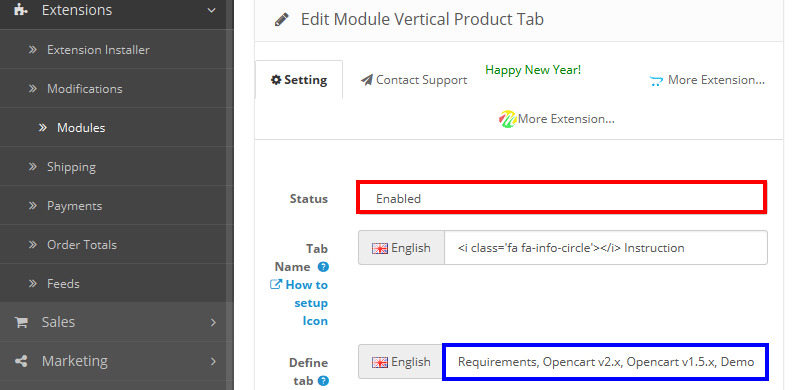 Go to Extensions ➔ Modules ➔ Click install Vertical Product Tab as image 3.