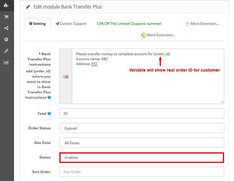 Change Status into Enable and edit another settings as image 4.