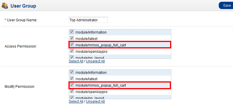 Login to your Opencart admin and go to System ➔ Users ➔ User Group.