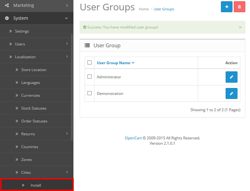 Click edit your user group name (Opencart default user group name is Administrator as Image 2.1).
