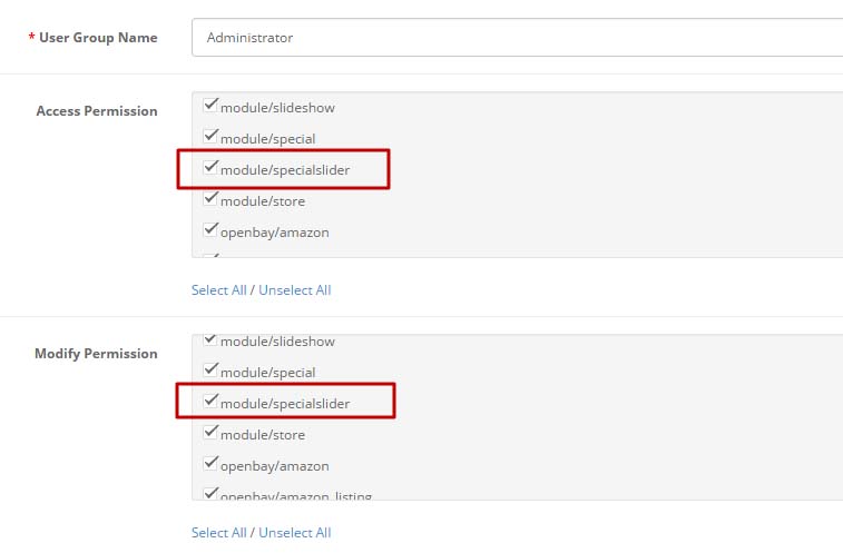 Login to your Opencart admin and go to System ➔ Users ➔ User Group.